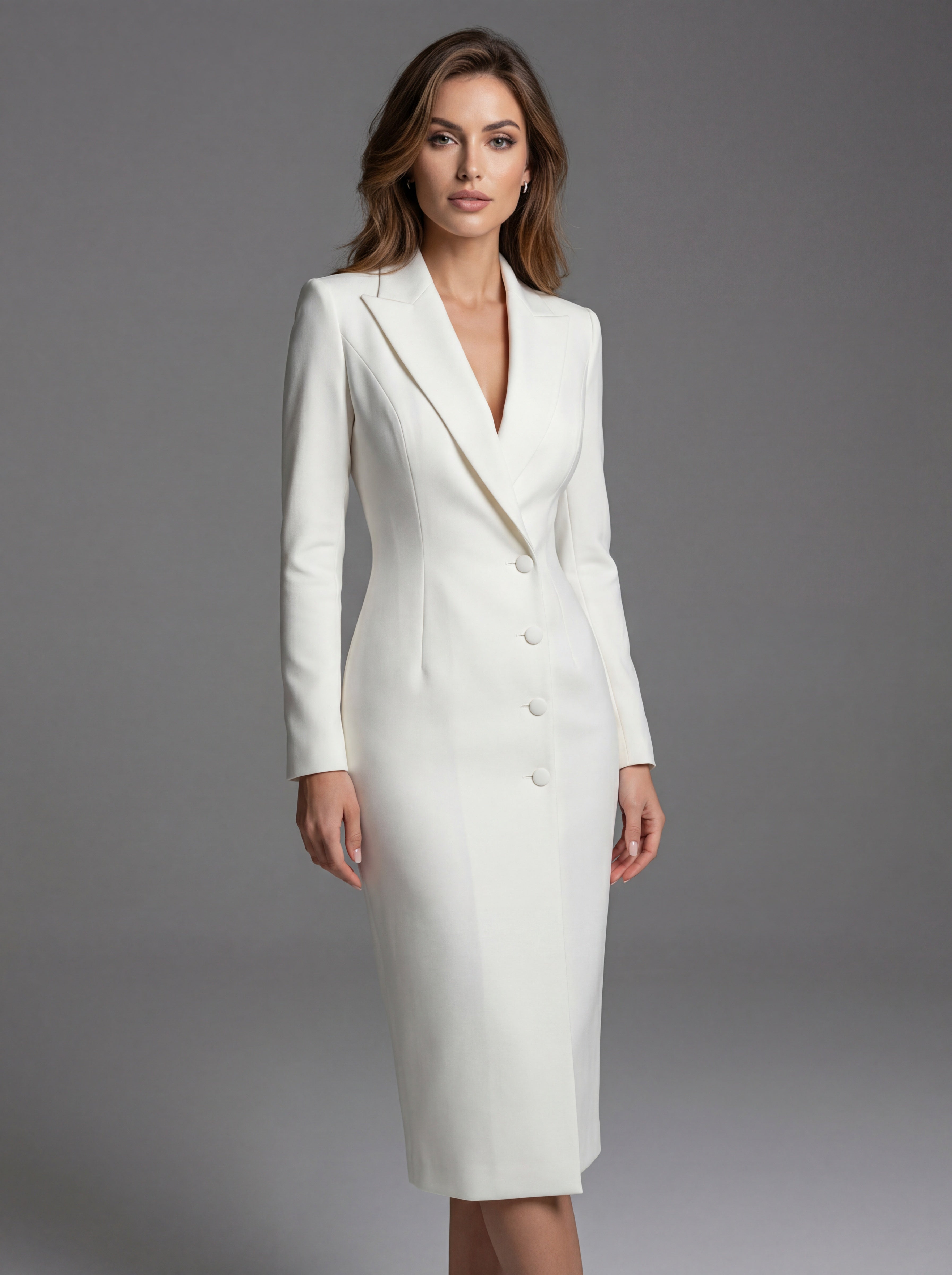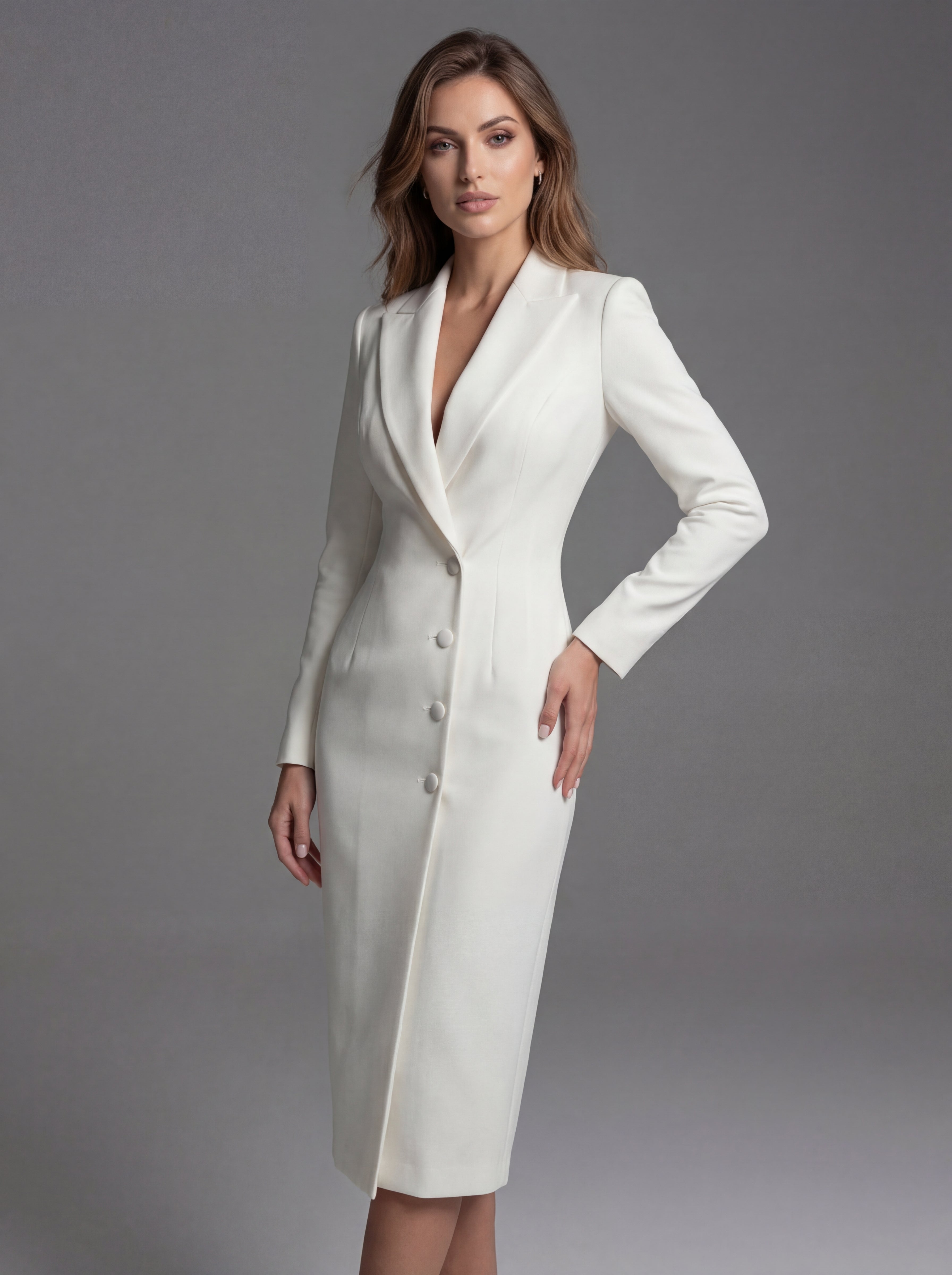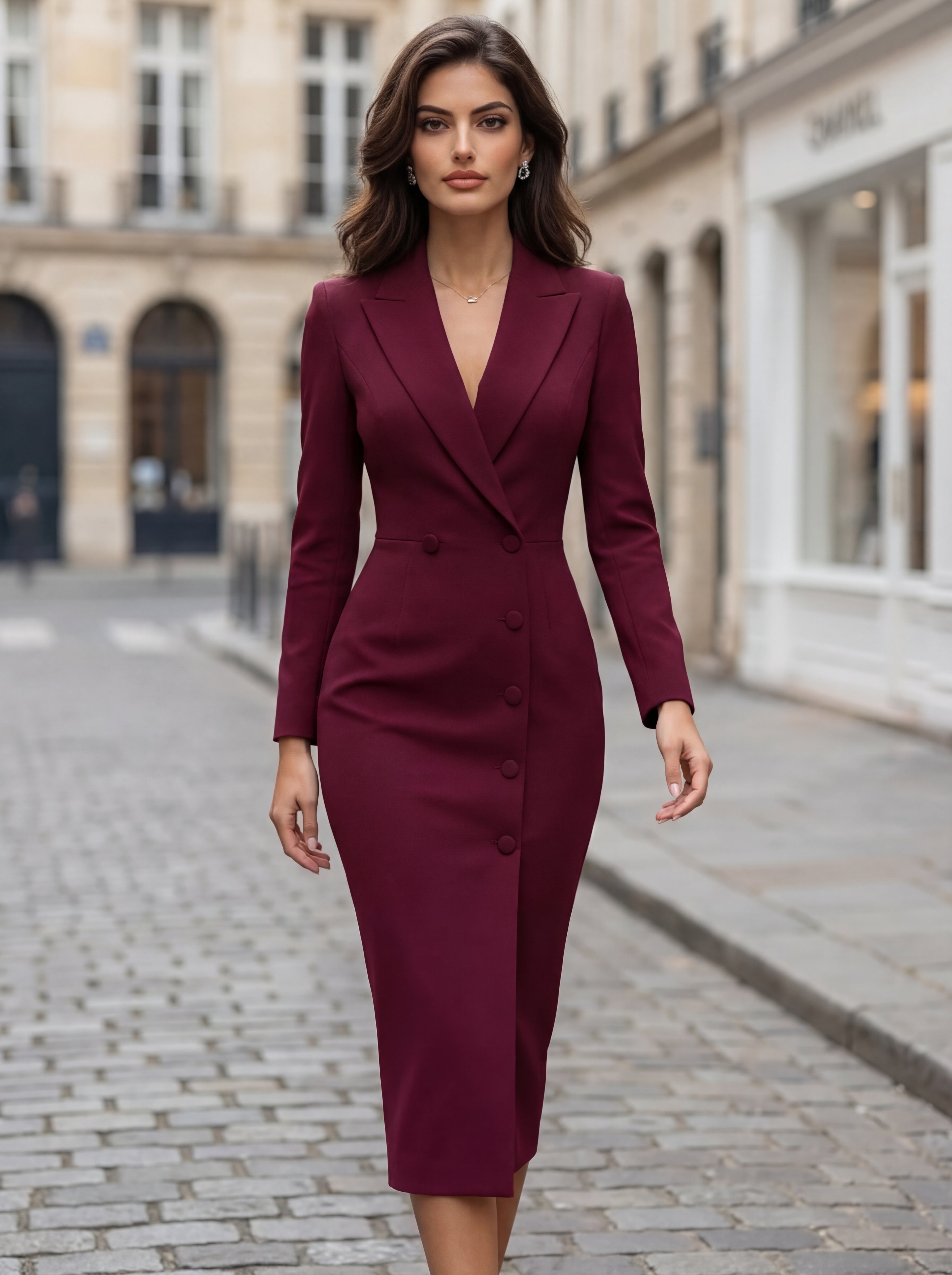 The Natalie Tailored Midi Blazer Dress is designed to deliver refined confidence with every step. Combining a structured blazer silhouette with an elegant midi length, this piece creates a powerful yet feminine profile suited for both professional and social settings.