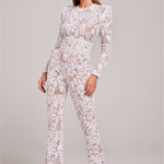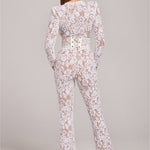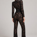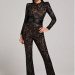 The Vivienne Tailored Lace Jumpsuit blends intricate floral lace with a sculpted, high waisted silhouette to create a refined and striking presence. Designed for moments that call for confidence and sophistication, this piece balances romance and structure in perfect harmony.